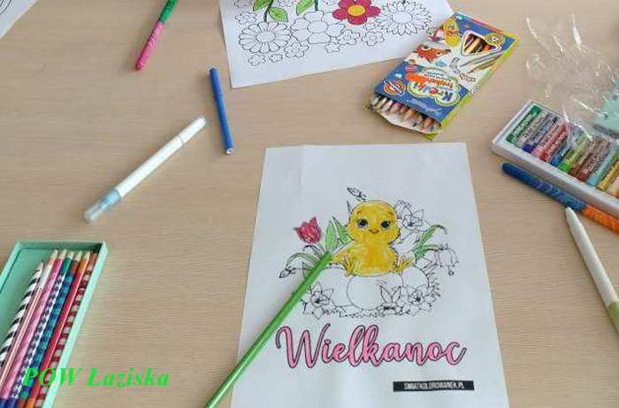 Rozpoczęliśmy przygotowania do Świąt Wielkiej Nocy. Najpierw postanowiliśmy nieco ozdobić placówkę pracowicie kolorując obrazki z motywami wielkanocnymi. Prace zostały oprawione w ramki i powieszone na klatce schodowej. Cieszą kolorami wchodzących do naszej placówki. Następnie zabraliśmy się do przygotowania kartek świątecznych aby wysłać je z najlepszymi życzeniami do naszych przyjaciół.