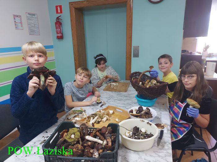 My co prawda nie byliśmy na grzybobraniu - nie pozwoliły nam na to obowiązki szkolne - ale z przyjemnością podziwialiśmy zbiory oraz pomagaliśmy czyścić grzyby. Podczas pracy wymienialiśmy się nasza wiedzą na temat grzybów oraz wyliczaliśmy ulubione potrawy z grzybami jakie mieliśmy