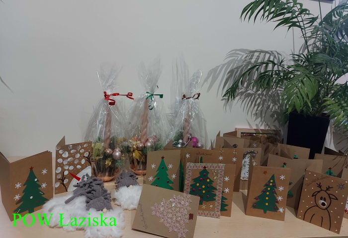 Wiedząc, że Święty Mikołaj nie zapomni o nas i na pewno przyśle do naszej placówki pomocników z prezentami, przygotowaliśmy drobne podarunki dla naszych darczyńców. Nad wykonaniem prac czuwała pani Ela oraz nasza suczka Mika – co zresztą widać na zdjęciu. Wspólnie z wychowawcami przygotowaliśmy kartki świąteczne, które wyślemy z najlepszymi życzeniami do naszych przyjaciół.